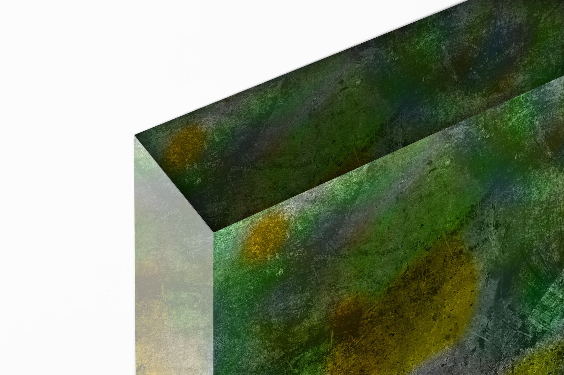 This artwork and collection are inspired by the infinite variety of nature’s impressive and breathtaking sceneries that surround us. When you are watching the sky, climbing on a mountain, walking in a forest or diving into the ocean. Every single artwork is a multilayer digital collage. Overpainted images of rough peeled surfaces, mixed with scratches and etchings. Details of aged textures and torn papers are scanned for the final processing.