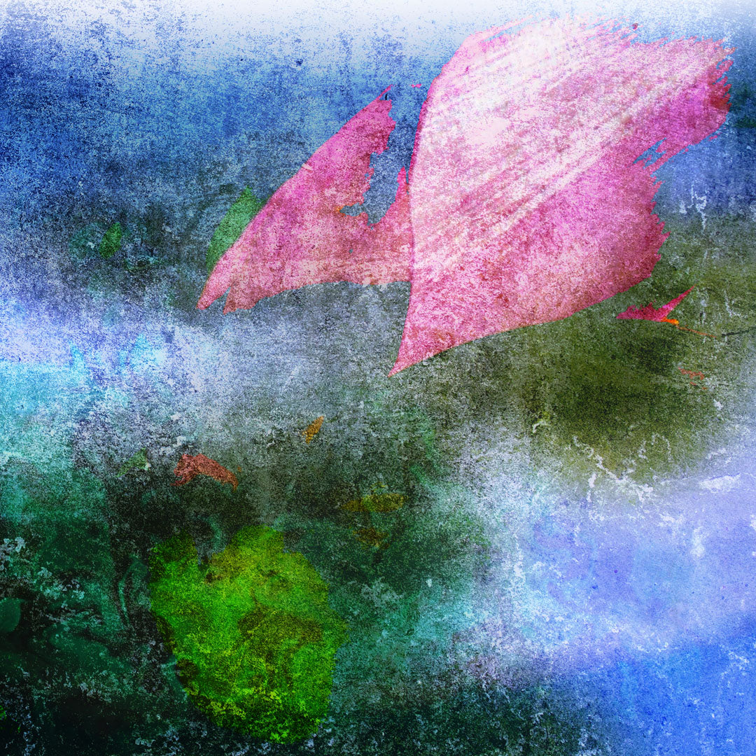 The creation process involves a collage of real images, rough peeled surfaces, coloured flakes, scratches, etchings and details of aged textures and torn papers. Collected materials are hand-coloured, scanned and digitally manipulated.