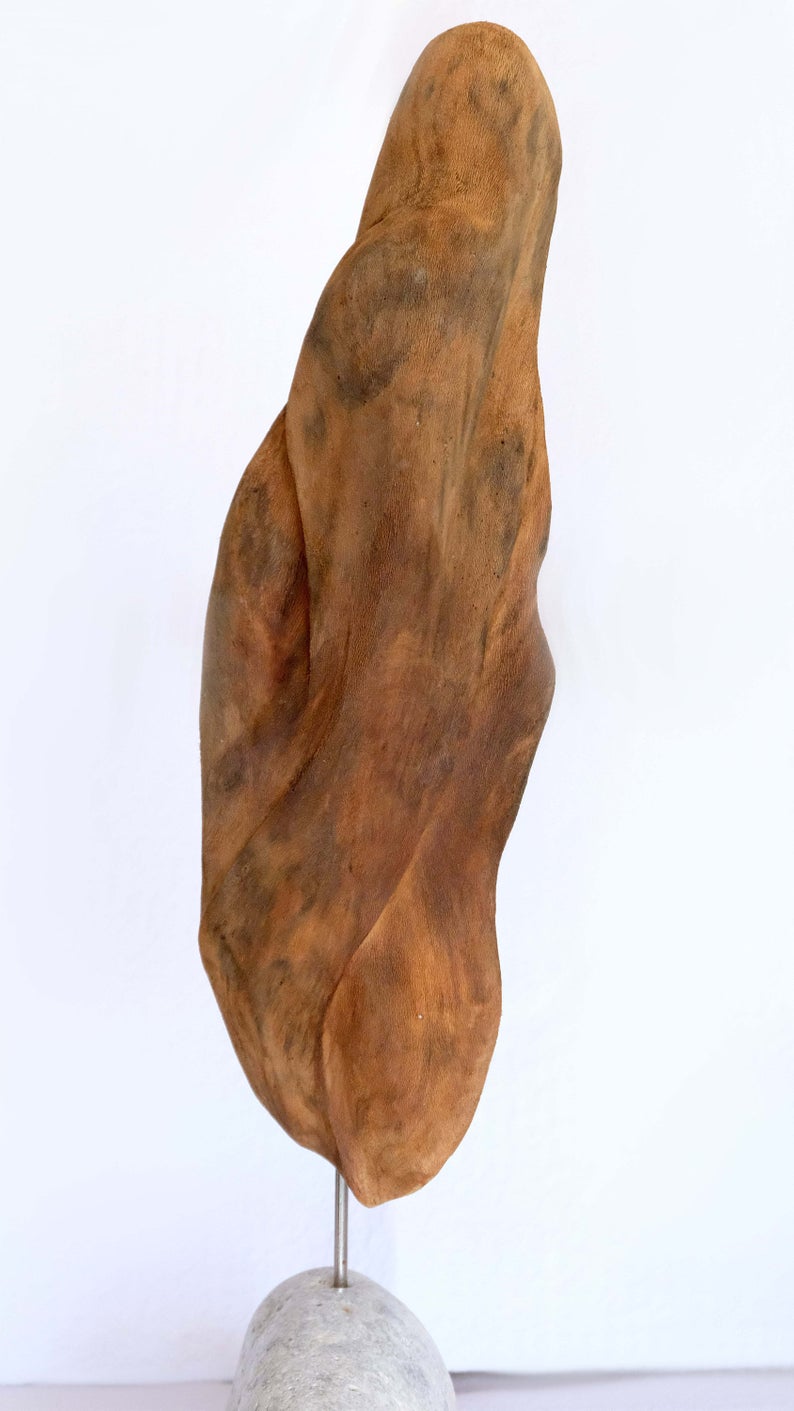 Handcrafted Abstract Sculpture made from the reclaimed Olive-Wood. Olive wood is very hard, strong and durable. It is deep brown in colour with strong, oil-like grain patterns that are a beautiful distinguishing feature: no two olive wood pieces are identical. This is a Unique Handcrafted Sculpture made in the island of Crete, Greece. The artist Antonios Georgakis spent a few months working from a studio in a small Village.